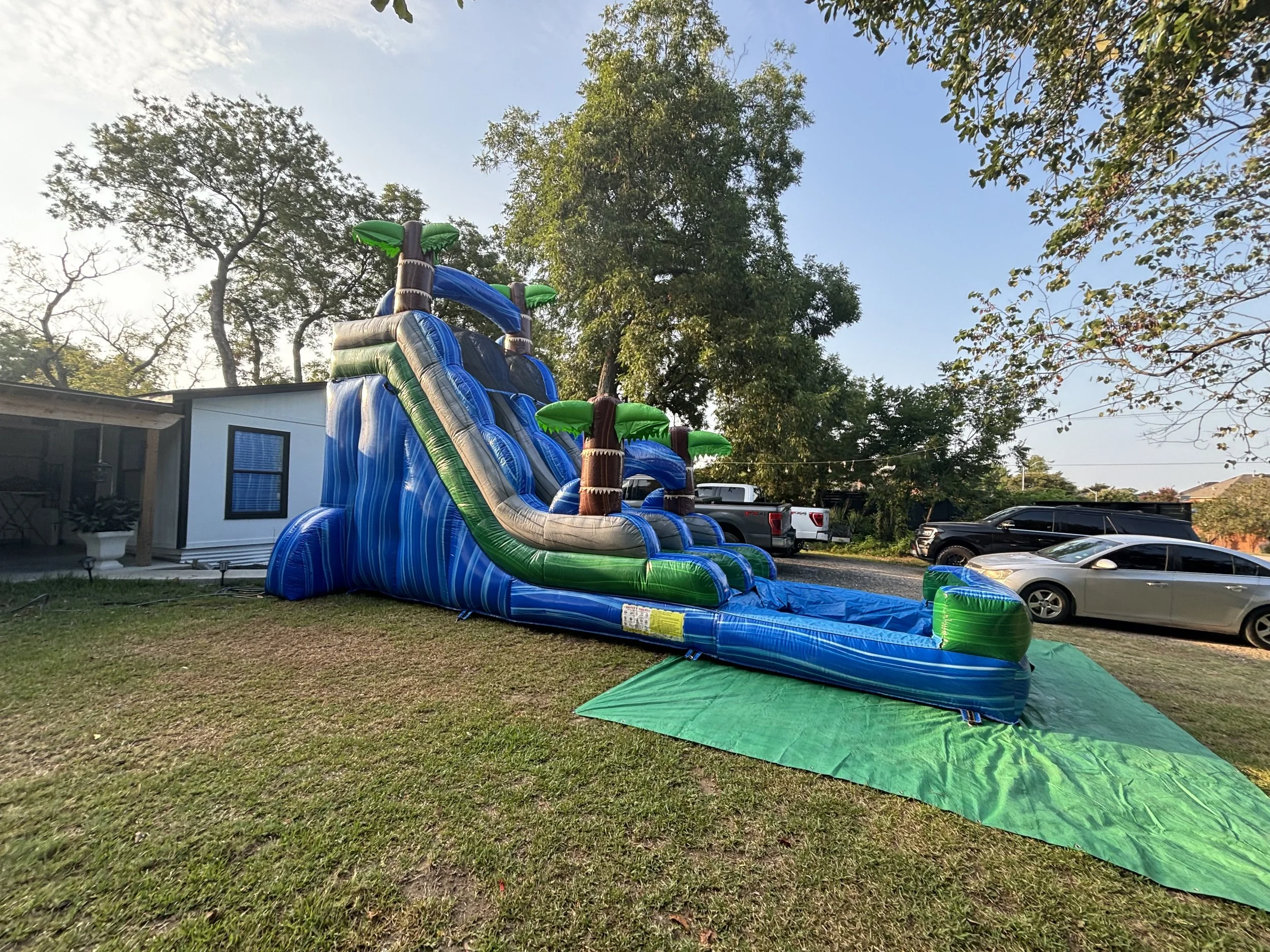Thrill-seekers will love this 18-foot-tall, tropical-themed inflatable waterslide, featuring a steep, fast-paced drop for maximum summer fun