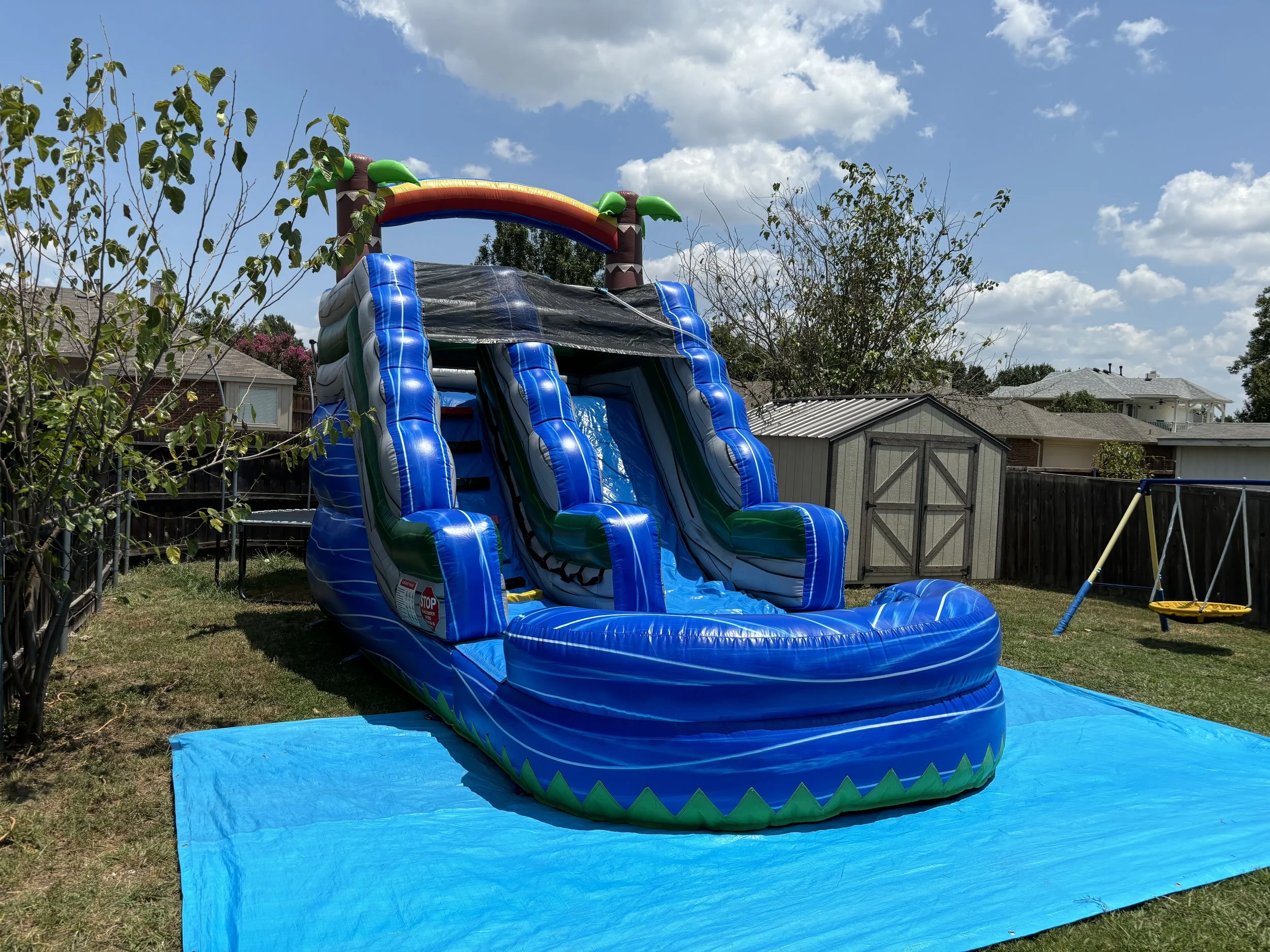 This 13ft inflatable waterslide is perfect for younger kids, featuring a fun tropical theme and a splash pool for endless summer excitement!
